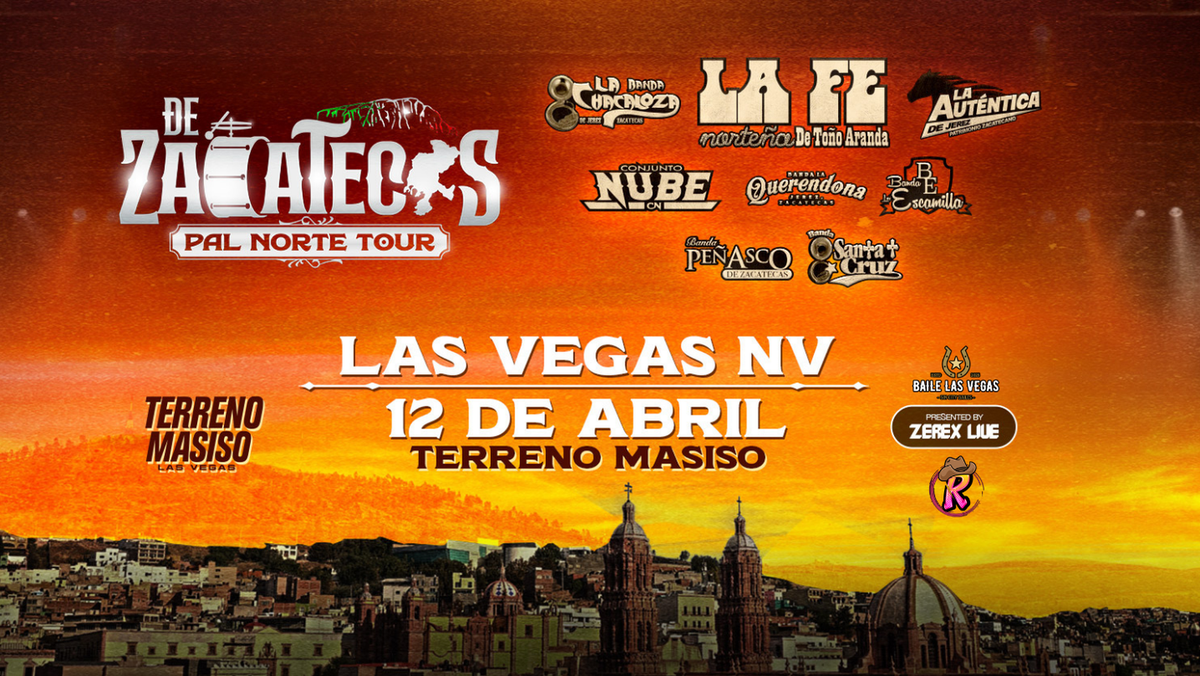 ¡ZACATECAS PAL NORTE LLEGA A LAS VEGAS! 🤠🔥 La fiesta más grande del regional mexicano en Terreno Masiso 🇲🇽 Con @lafenortenadetonoaranda y un cartel de lujo desde Zacatecas.GET TICKETS
